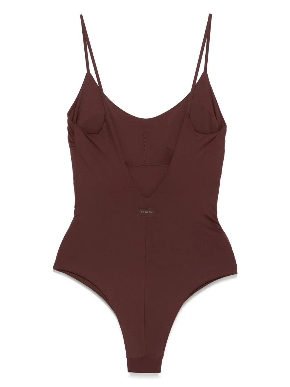 chocoladebruin logopatch aan de achterkant spaghettibandjes Zwemkleding moet over je eigen kleding worden aangepast.