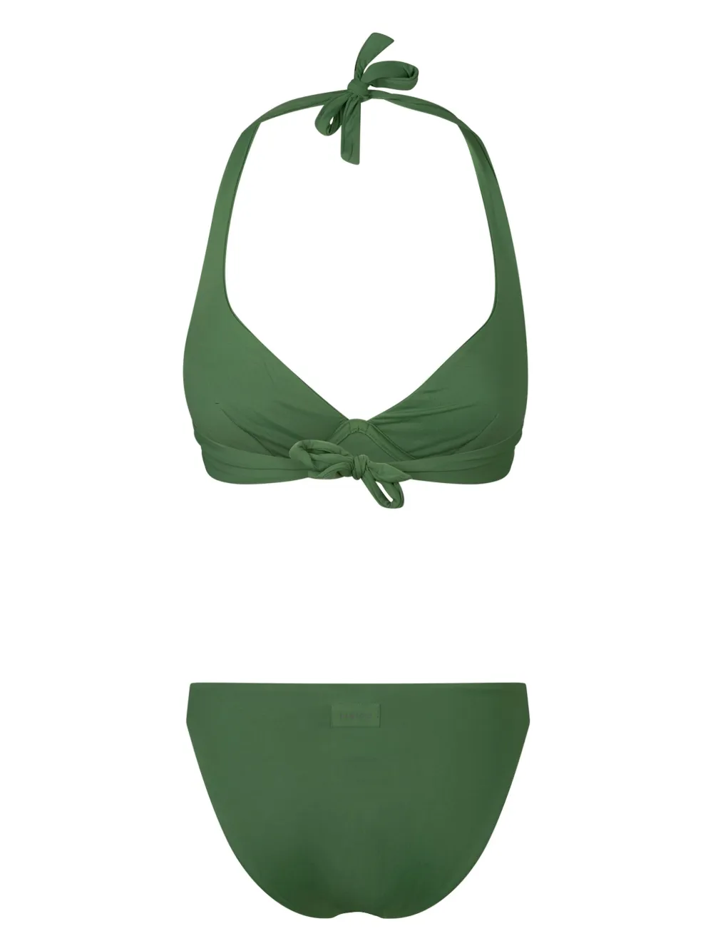 bosgroen stretch design beugelbh halternek striksluiting aan de achterkant klassieke bikinislip Zwemkleding moet over je eigen kleding worden aangepast.