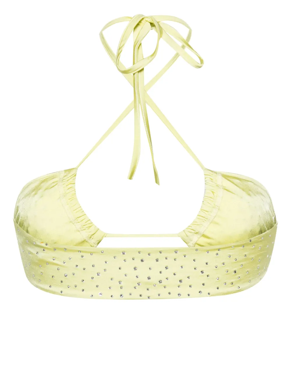 lichtgeel stretch design triangel cup ruchedetails verfraaid met kristallen halternek striksluiting Zwemkleding moet over je eigen kleding worden aangepast.