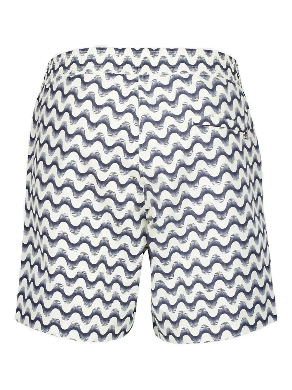wit blauwe golvenprint verstelbare tailleband zijzakken achterzak platte voorkant Zwemkleding moet over je eigen kleding worden aangepast.