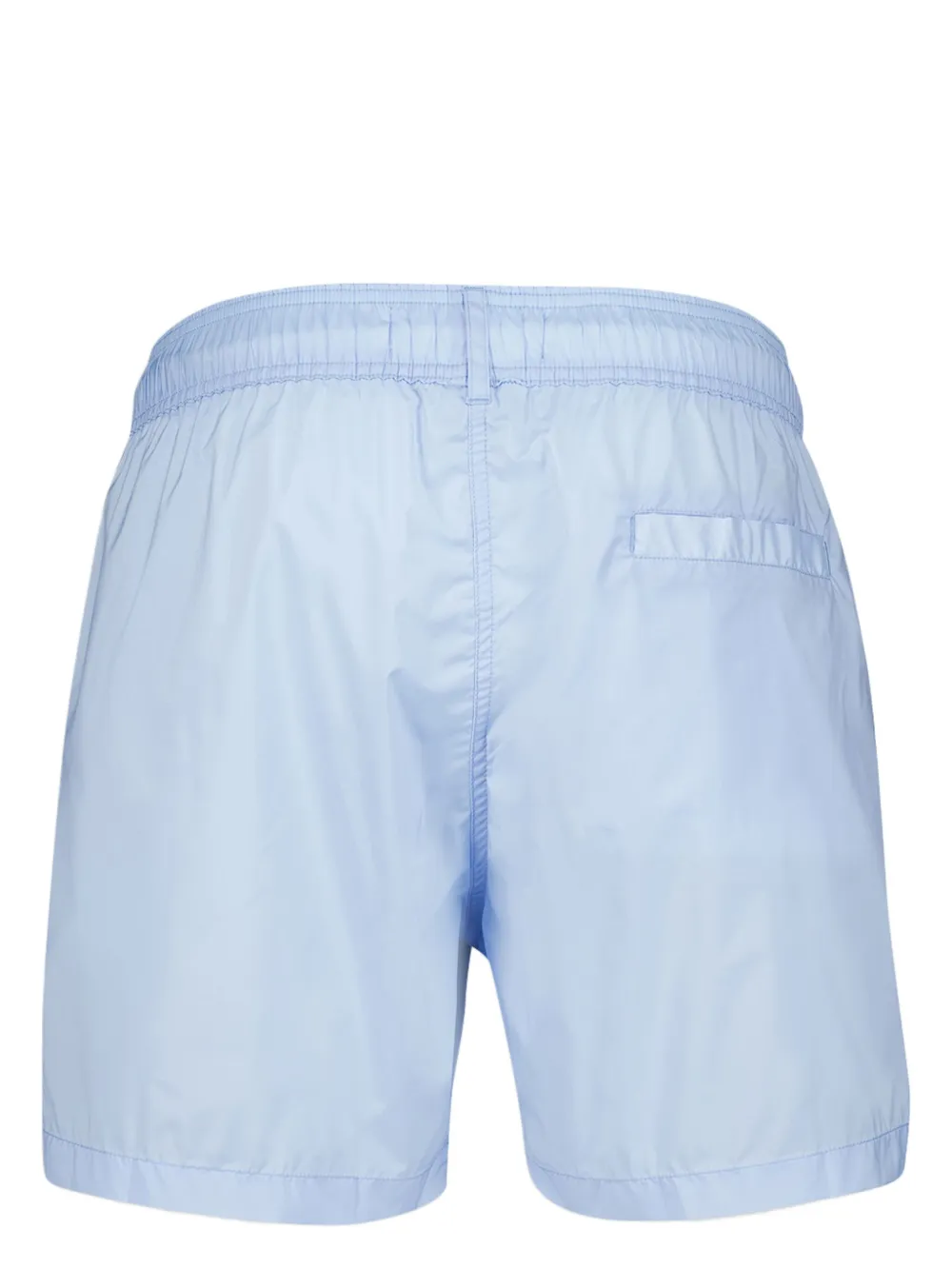 babyblauw gerecycled polyester trekkoordsluiting bij de taille twee paspelzakken aan de zijkant paspelzak aan de achterkant dijlengte Zwemkleding moet over je eigen kleding worden aangepast.