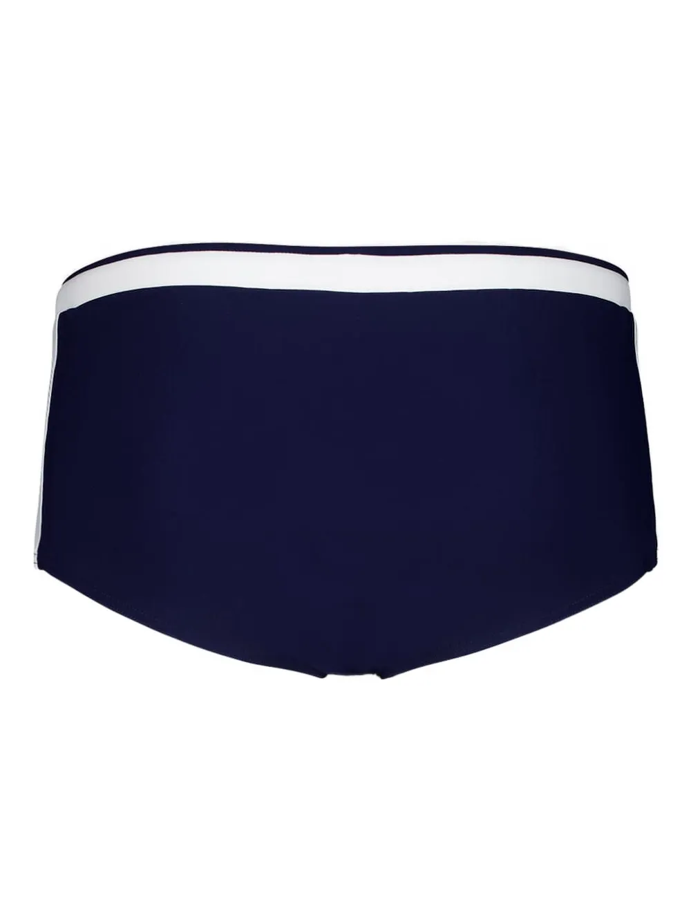 blauw geribbelde tailleband witte zijstrepen logopatch platte voorkant Zwemkleding moet over je eigen kleding worden aangepast.