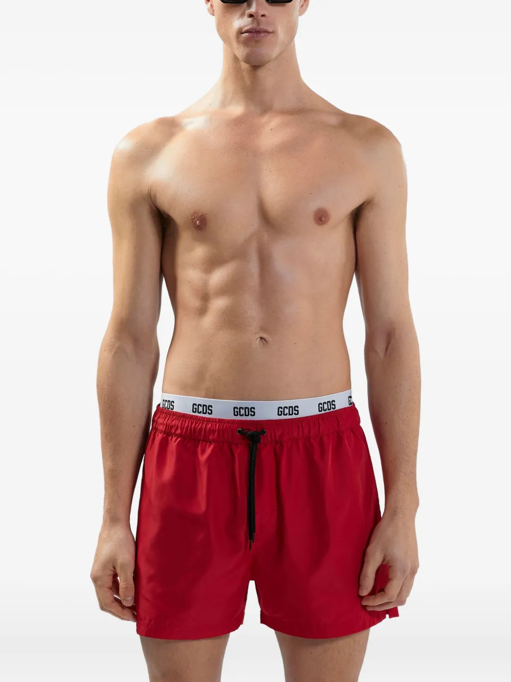 helderrood elastische tailleband met trekkoord klepzak aan de achterkant korte zijsplitten Zwemkleding moet over je eigen kleding worden aangepast.
