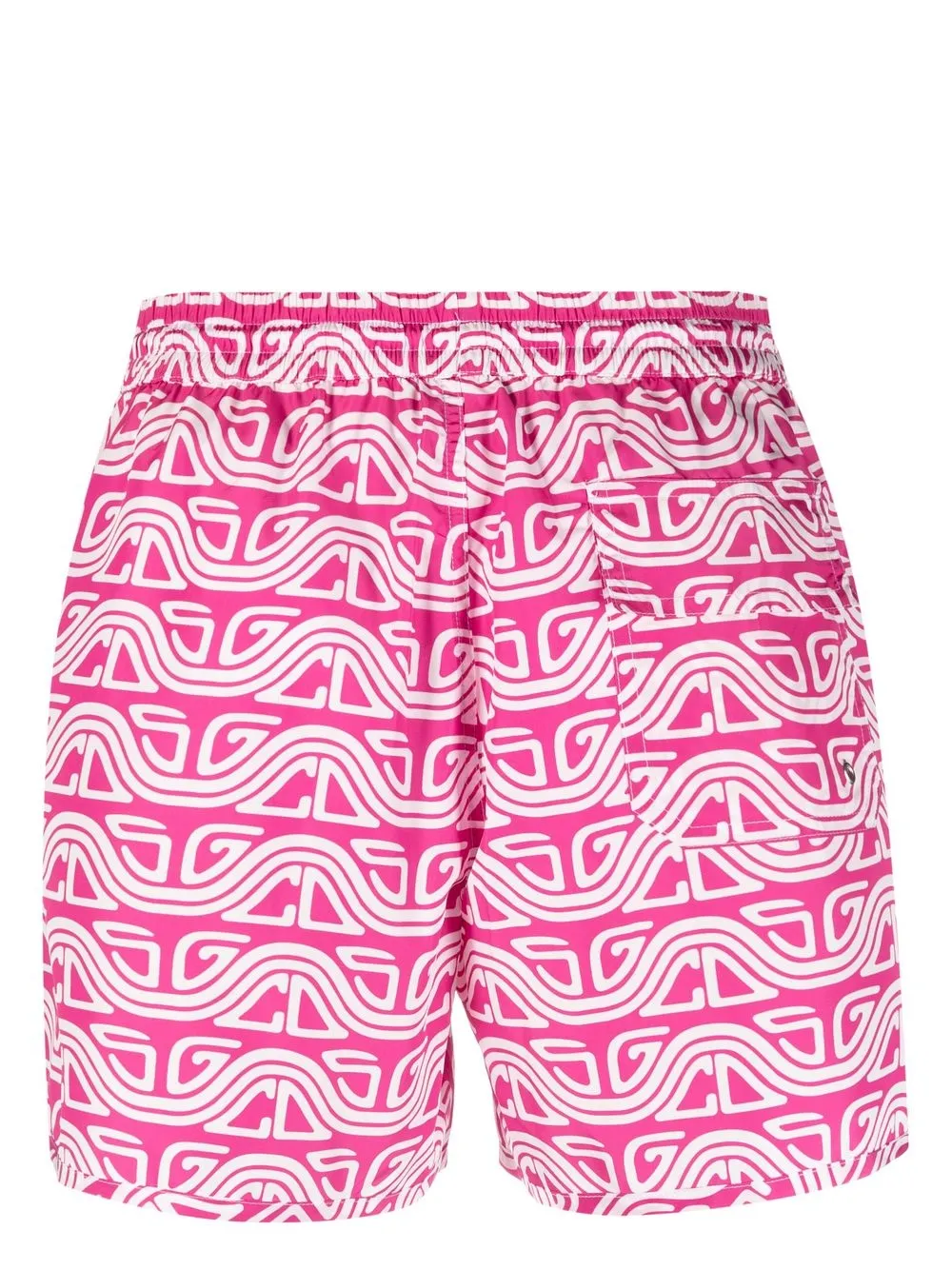 Fuchsia, licht materiaal, abstract patroon, trekkoordsluiting bij de taille, twee steekzijzakken, achterzak met klep en straight-fit. Zwemkleding moet over je eigen kleding worden aangepast..