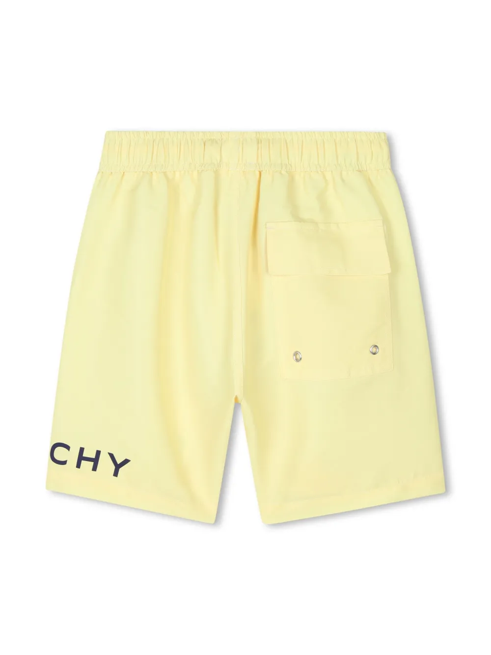 lichtgeel elastische tailleband met trekkoord mid waist twee steekzakken aan de zijkant logoprint op de pijpen klepzak achter ringlets detail knielengte Zwemkleding moet over je eigen kleding worden aangepast.