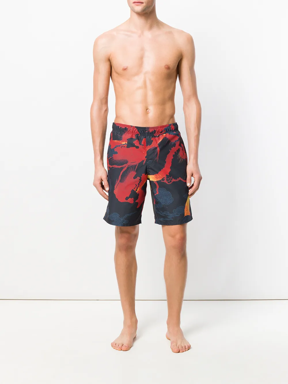 Print swim shorts van Givenchy voorzien van elastische taille, knielengte, achterzak en patroonmix. Zwemkleding moet over uw eigen kleding aan worden gepast.