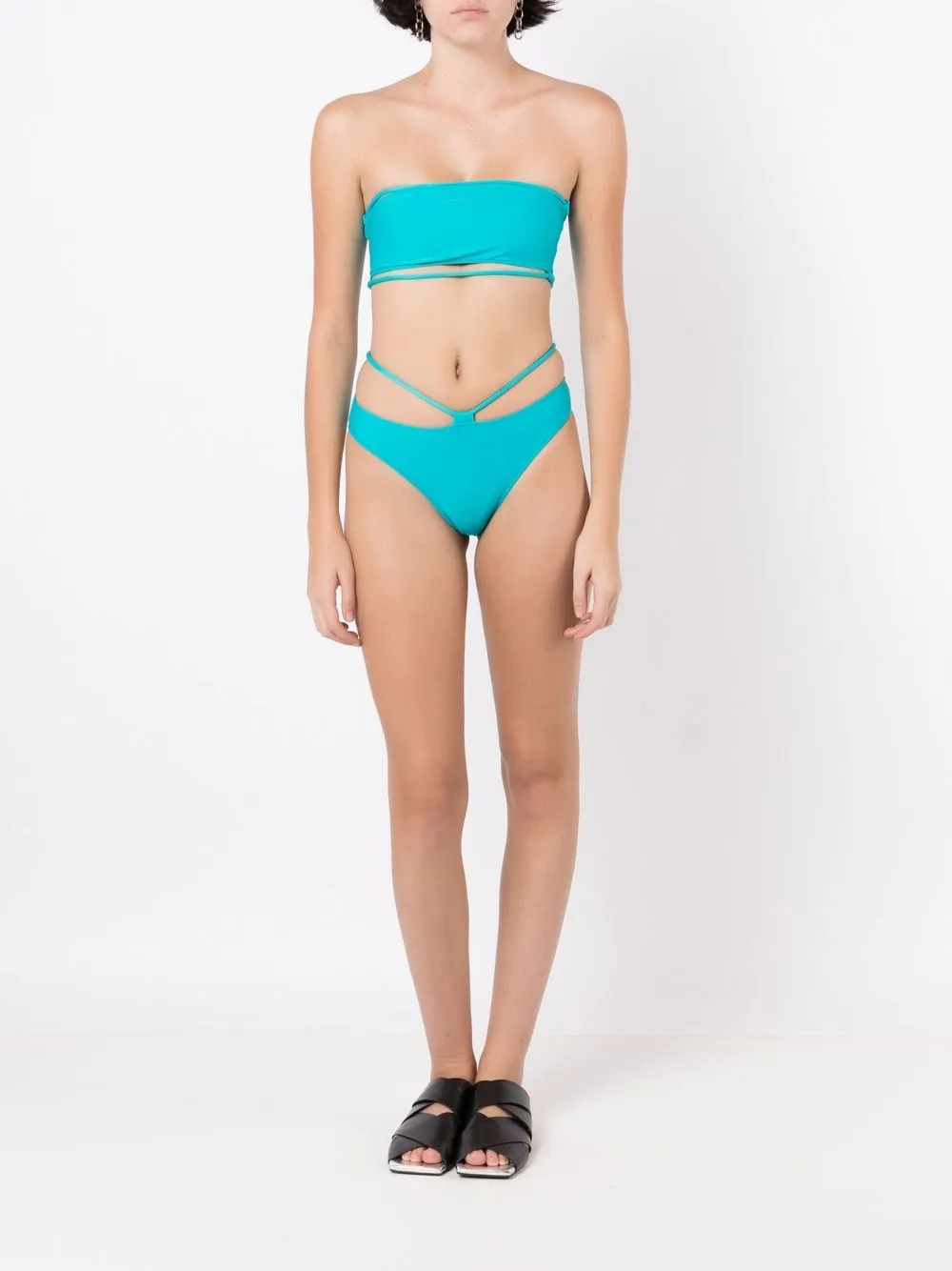blauw stretch design banddetail hoog uitgesneden Zwemkleding moet over je eigen kleding worden aangepast.