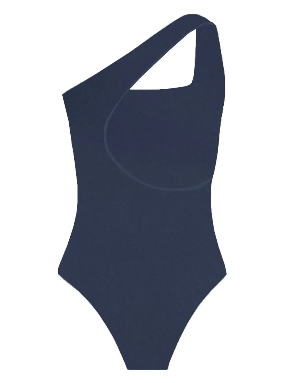 diepblauw asymmetrisch design asymmetrische halslijn laag uitgesneden rug Zwemkleding moet over je eigen kleding worden aangepast.