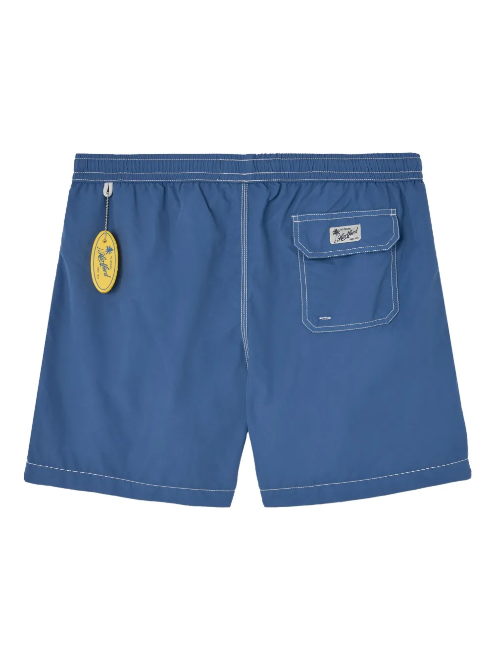 donkerblauw contrasterende stiksels trekkoordsluiting klepzak aan de achterkant Zwemkleding moet over je eigen kleding worden aangepast.