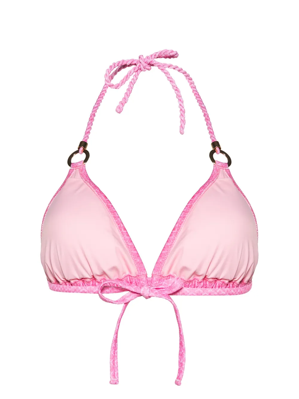 roze gerecycled polyamide stretch design getextureerde afwerking slangenprint ringdetail touwdetails gordijn-effect triangel cup halternek striksluiting striksluiting aan de achterkant uitneembare pads volledige voering Zwemkleding moet over je eigen kleding worden aangepast.