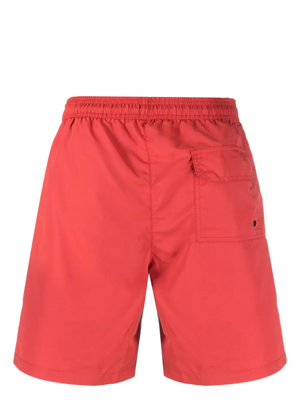 helderrood logopatch aan de voorkant elastische tailleband met trekkoord opgestikt vak aan de achterkant verstelbare pasvorm rechte zoom Zwemkleding moet over je eigen kleding worden aangepast.