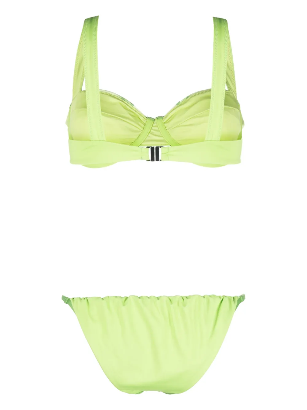 lichtgroen gerecyclede polyesterblend ruchedetails beugelbh grafische print aan de achterkant sweetheart-hals mouwloos gespsluiting high waist bikinibroek Zwemkleding moet over je eigen kleding worden aangepast.