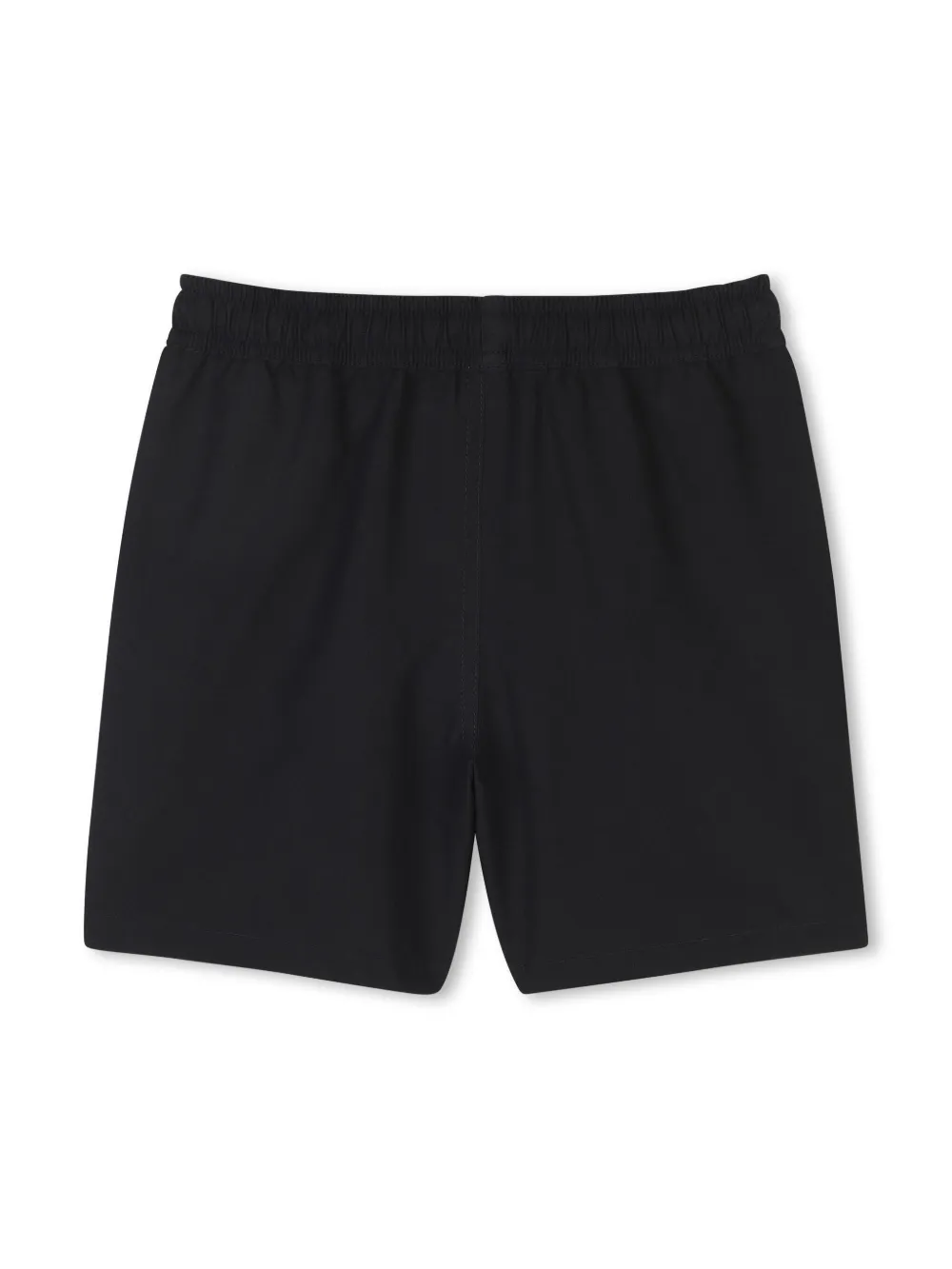 zwart logopatch aan de voorkant elastische tailleband met trekkoord twee diagonale zakken aan de zijkant straight dij-lengte Zwemkleding moet over je eigen kleding worden aangepast.