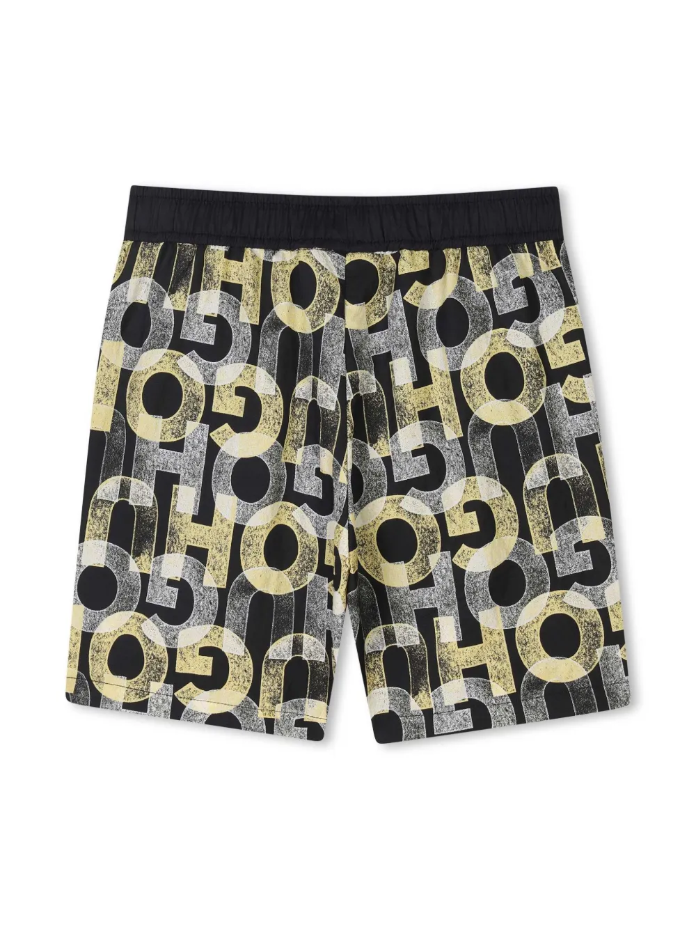zwart/wit/lichtgeel elastische tailleband met trekkoord mid waist logoprint twee steekzakken aan de zijkant logo-applicatie knielengte Zwemkleding moet over je eigen kleding worden aangepast.