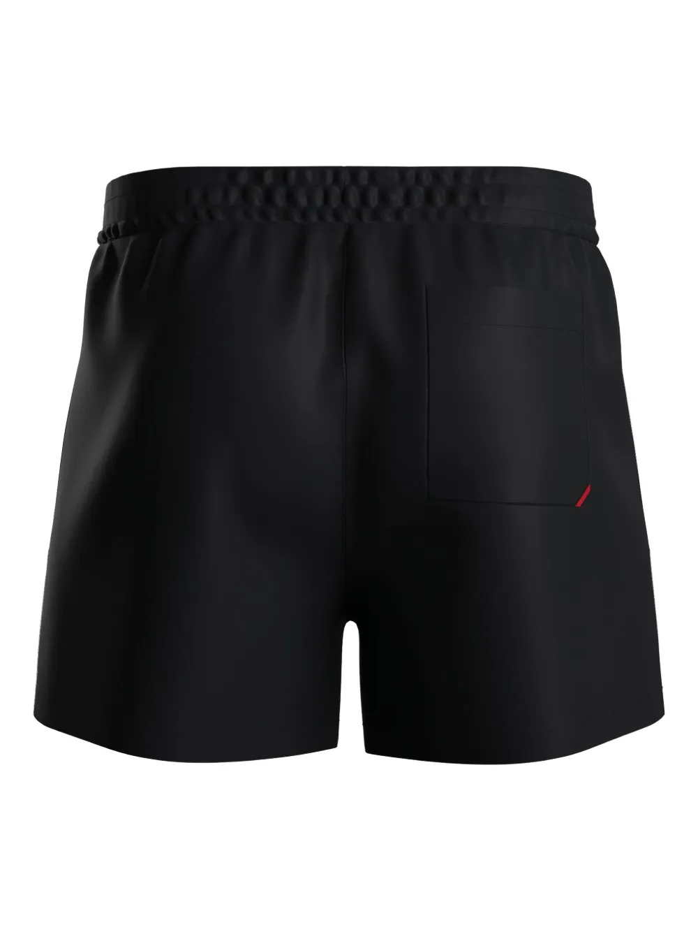 zwart geribbelde tailleband zijvak zilveren logo Zwemkleding moet over je eigen kleding worden aangepast.