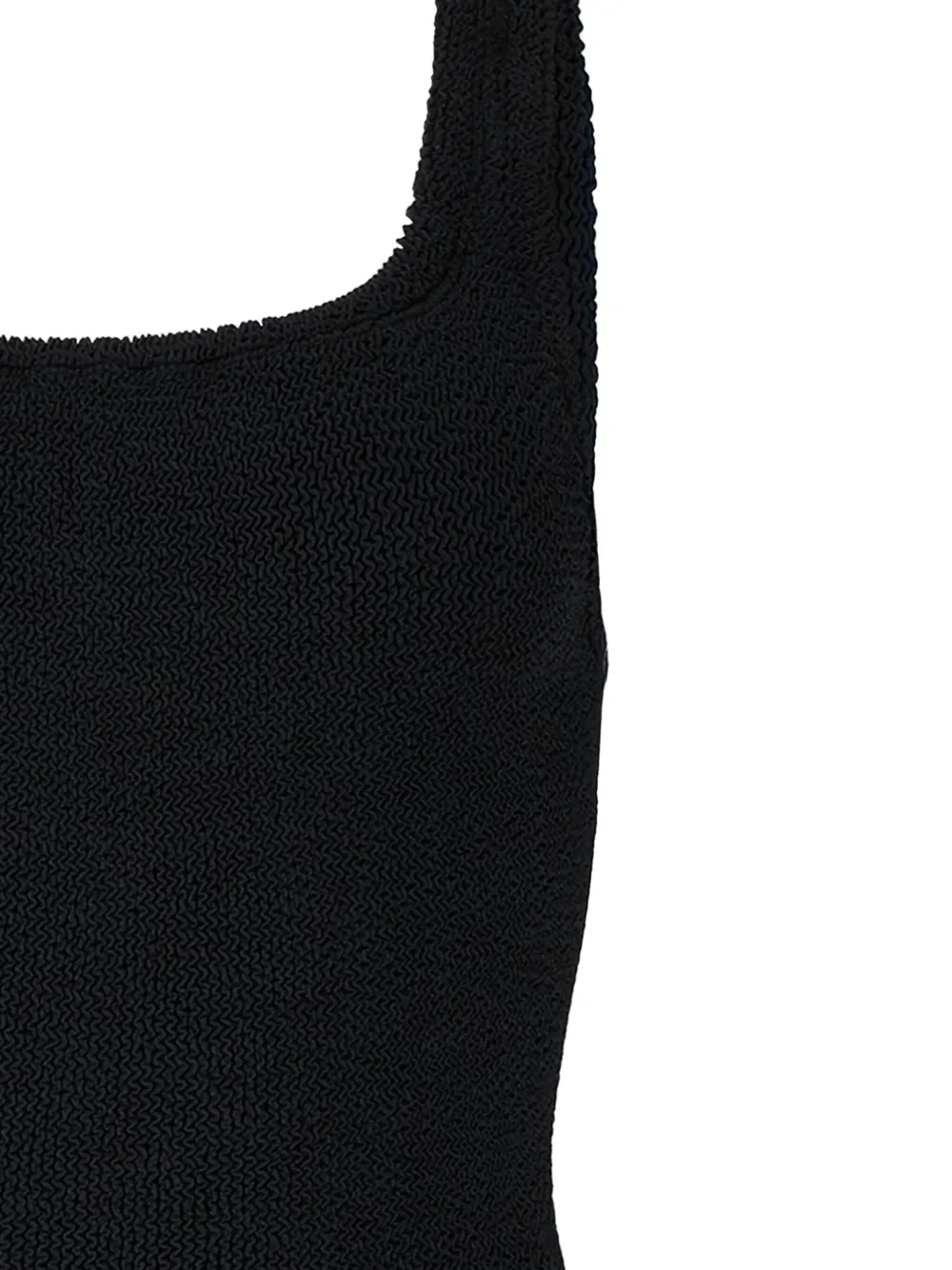 zwart geribbelde textuur vierkante halslijn mouwloos Zwemkleding moet over je eigen kleding worden aangepast.