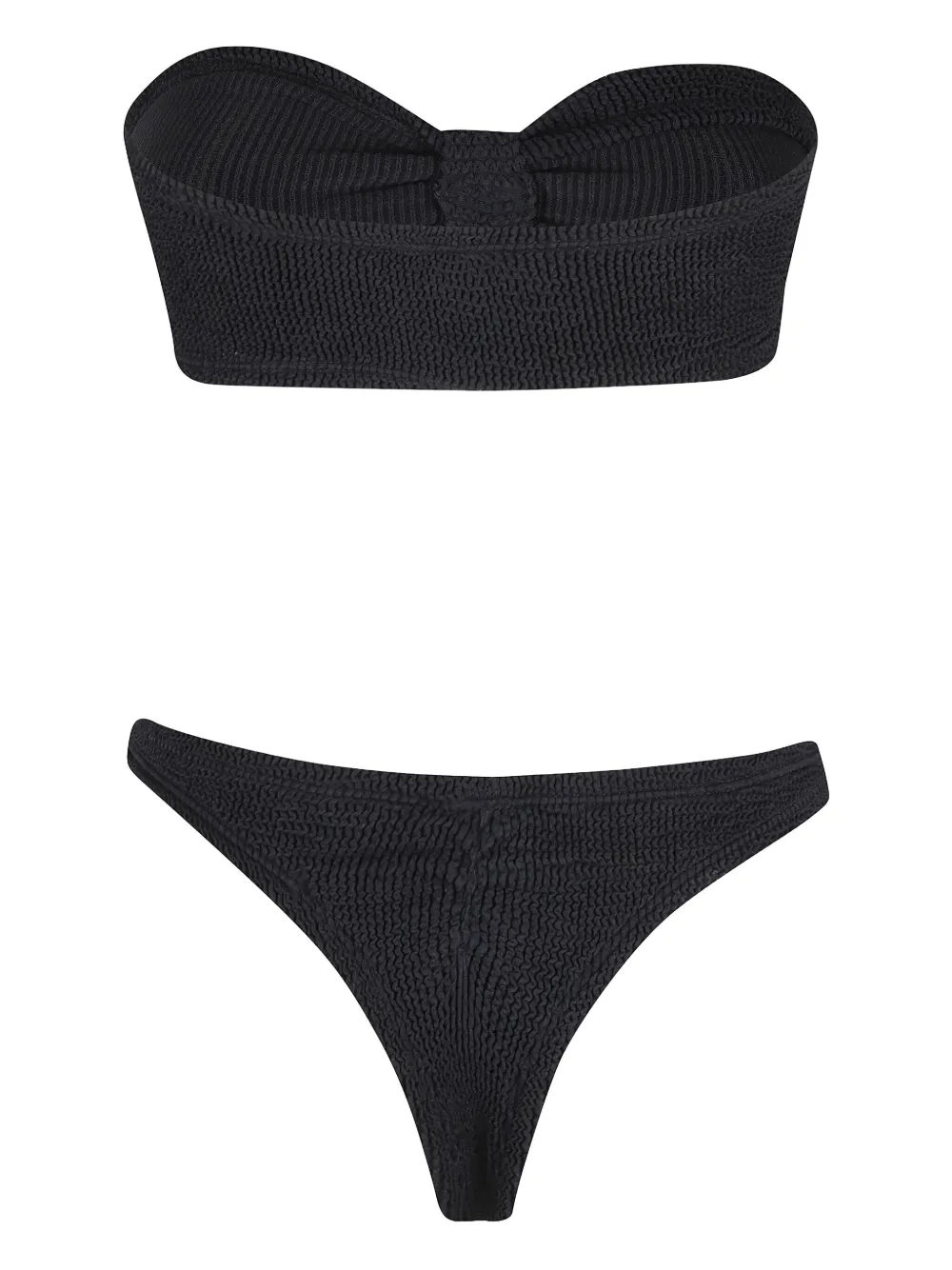zwart getextureerd design bandeau top strikdetail Zwemkleding moet over je eigen kleding worden aangepast.