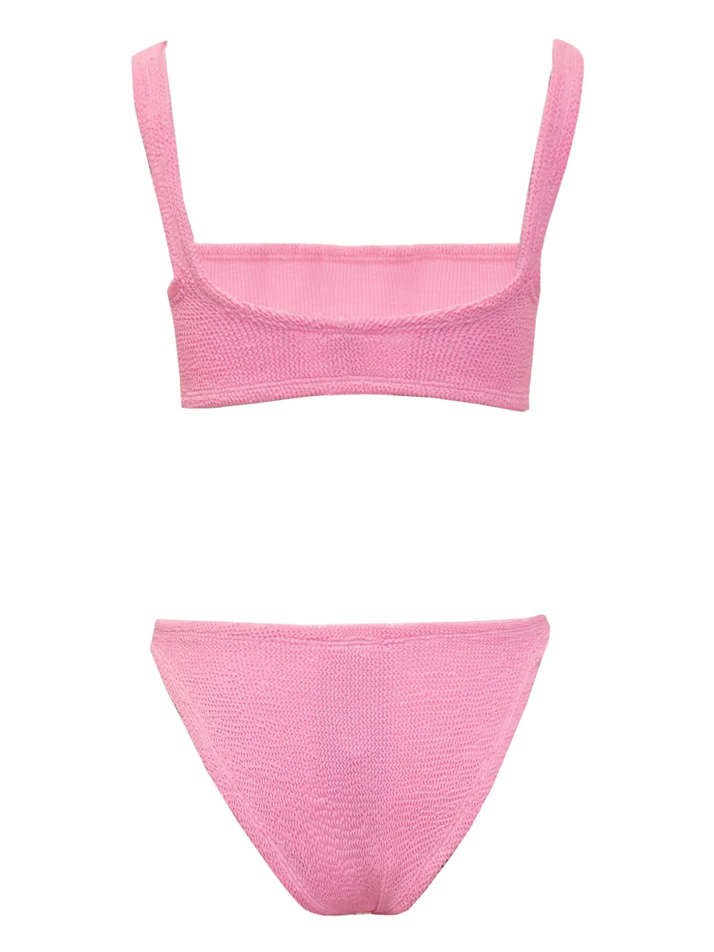 kauwgomroze instapmodel dunne schouderbandjes high waist bikinibroek Zwemkleding moet over je eigen kleding worden aangepast.