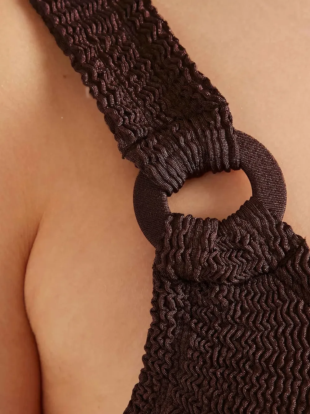 bruin getextureerde stof ronde hals laag uitgesneden rug tonale oorring details Zwemkleding moet over je eigen kleding worden aangepast.