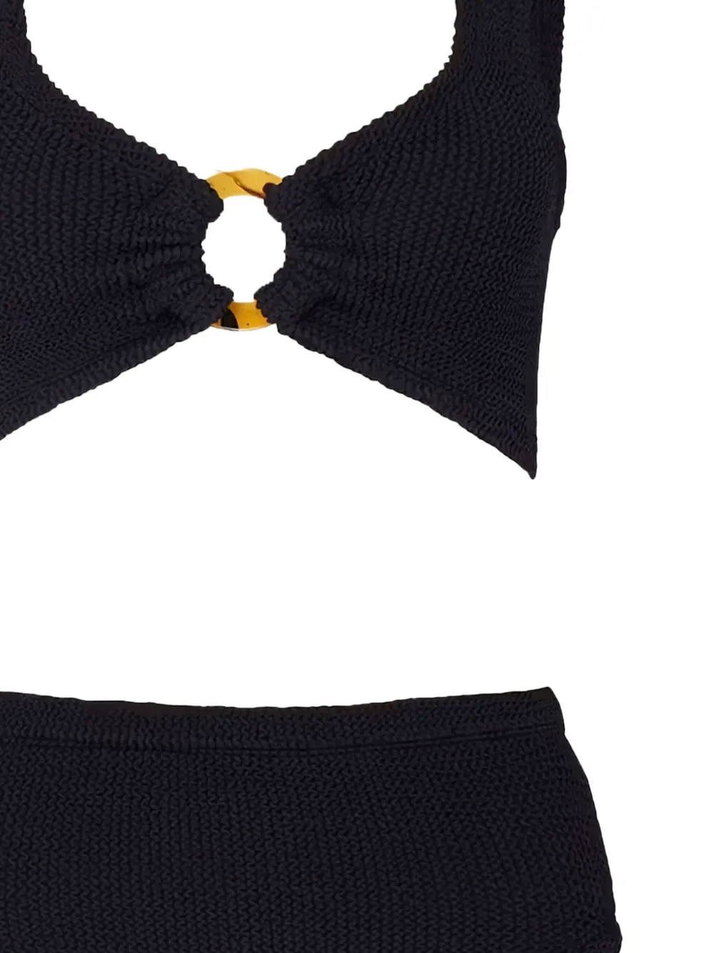 zwart ringdetail high-rise gebreide textuur diepe ronde hals hoog uitgesneden Zwemkleding moet over je eigen kleding worden aangepast.