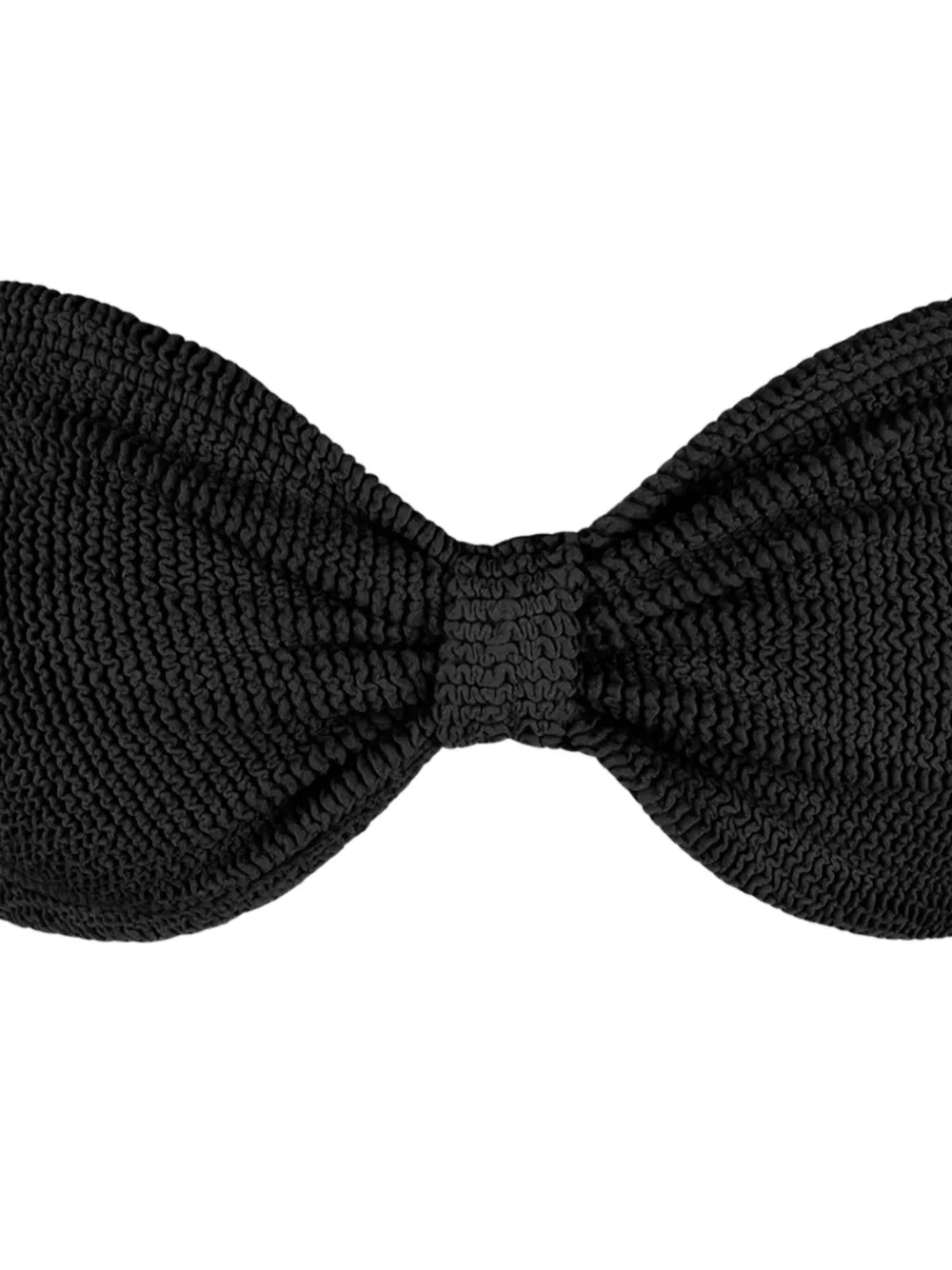 zwart getextureerd design strapless bandeautop strikdetail aan de voorkant bijpassende low-waist bikinislip Zwemkleding moet over je eigen kleding worden aangepast.