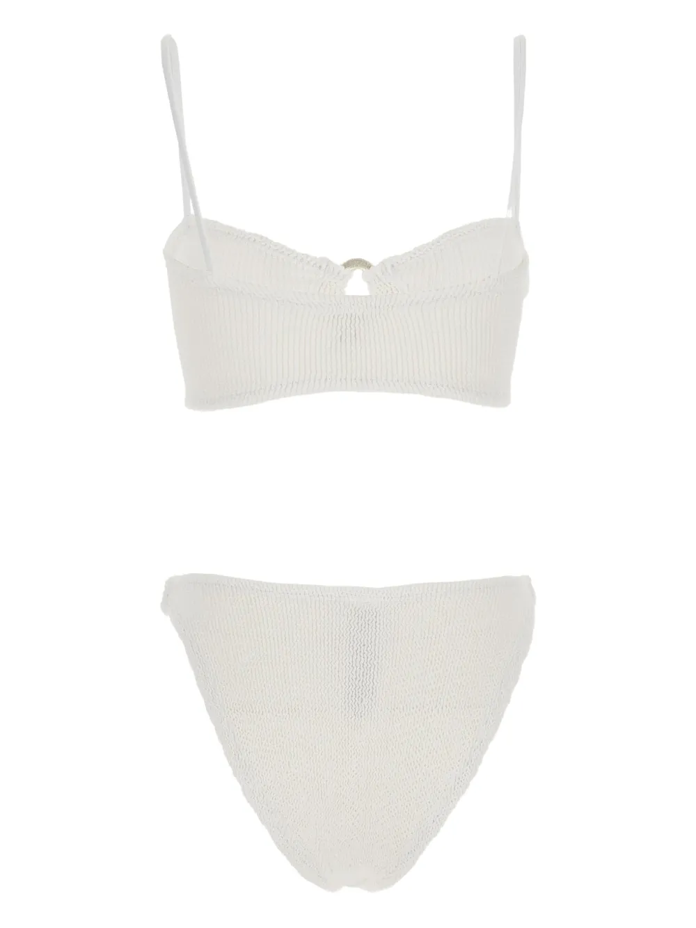 wit getextureerde stof parelglans oorring detail Zwemkleding moet over je eigen kleding worden aangepast.