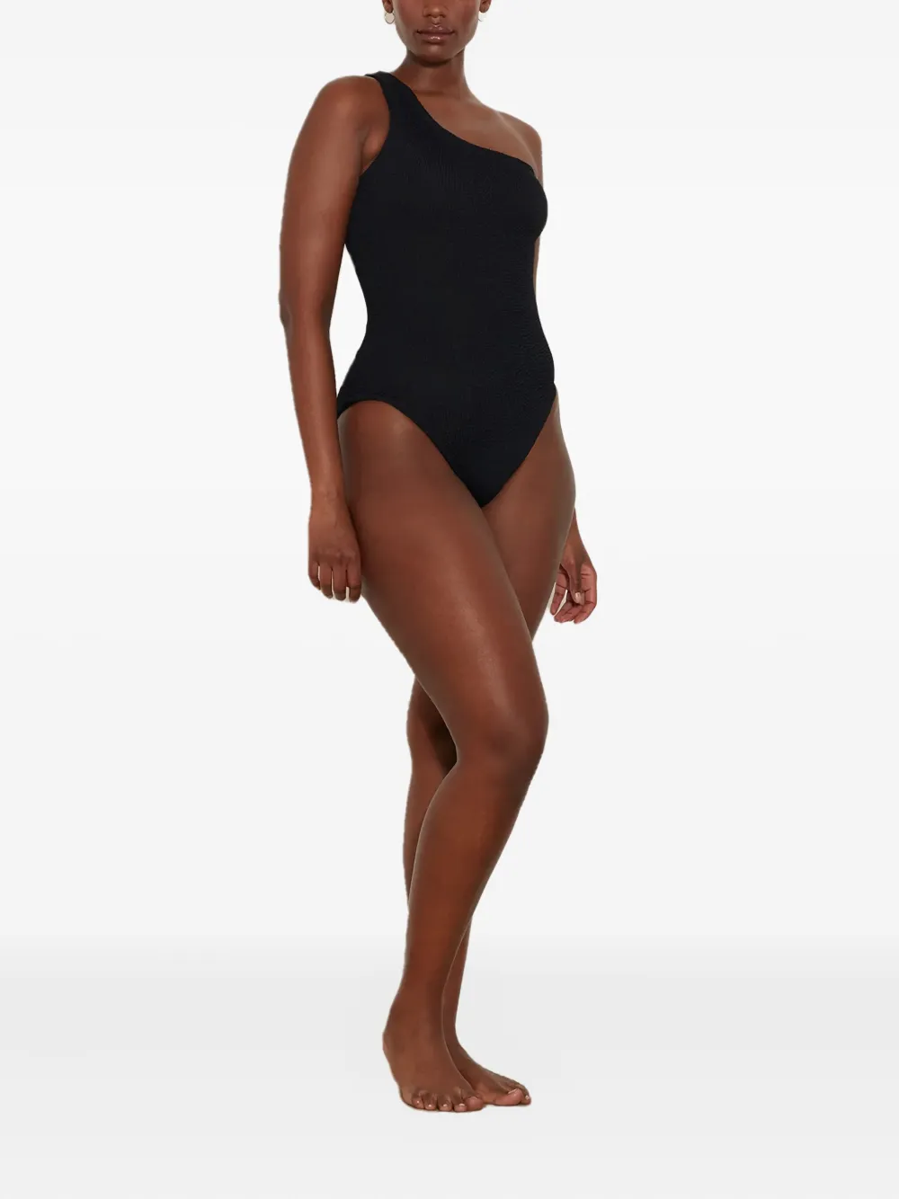 zwart asymmetrisch design geribbelde textuur Zwemkleding moet over je eigen kleding worden aangepast.