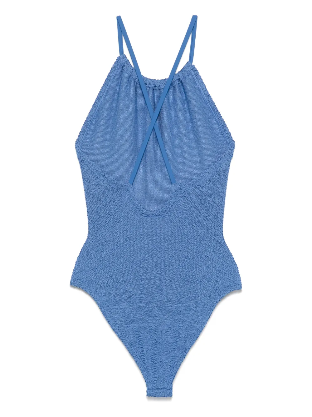 imperial blauw ronde hals gekruiste bandjes aan de achterkant gedeeltelijk gevoerd Zwemkleding moet over je eigen kleding worden aangepast.