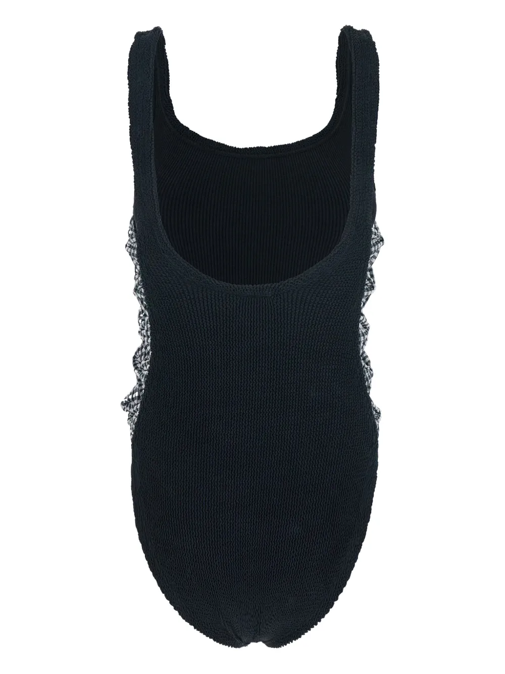 zwart geribbelde textuur open rug stretch design Zwemkleding moet over je eigen kleding worden aangepast.