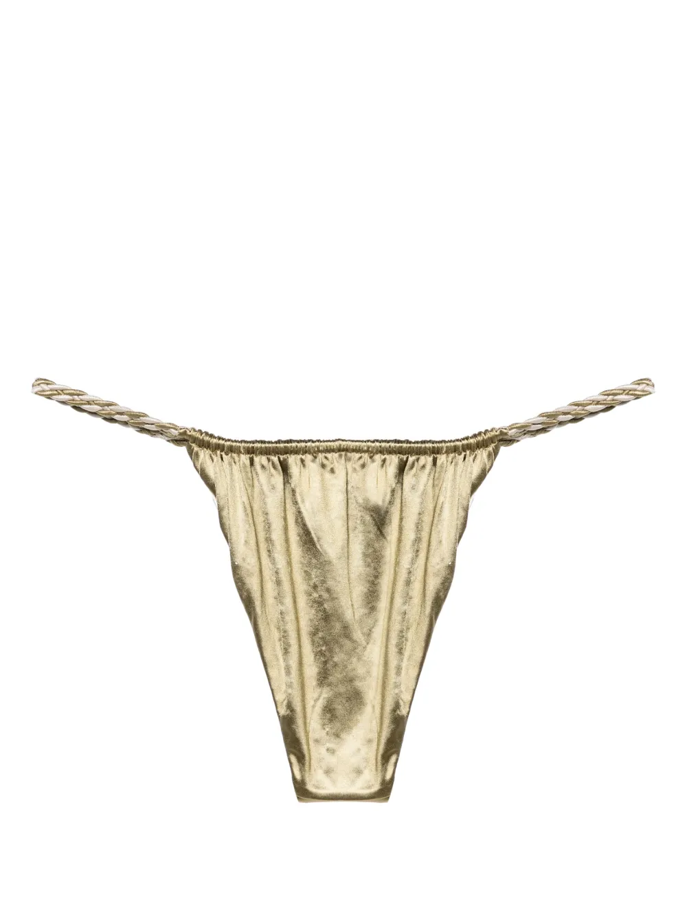 groen/zilverkleurig stretch design omkeerbaar metallic glans gesmockte details gevlochten bandjes hoog uitgesneden Zwemkleding moet over je eigen kleding worden aangepast.