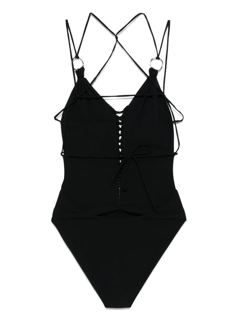 zwart schuifknoopsluiting ringdetail gevlochten details Zwemkleding moet over je eigen kleding worden aangepast.