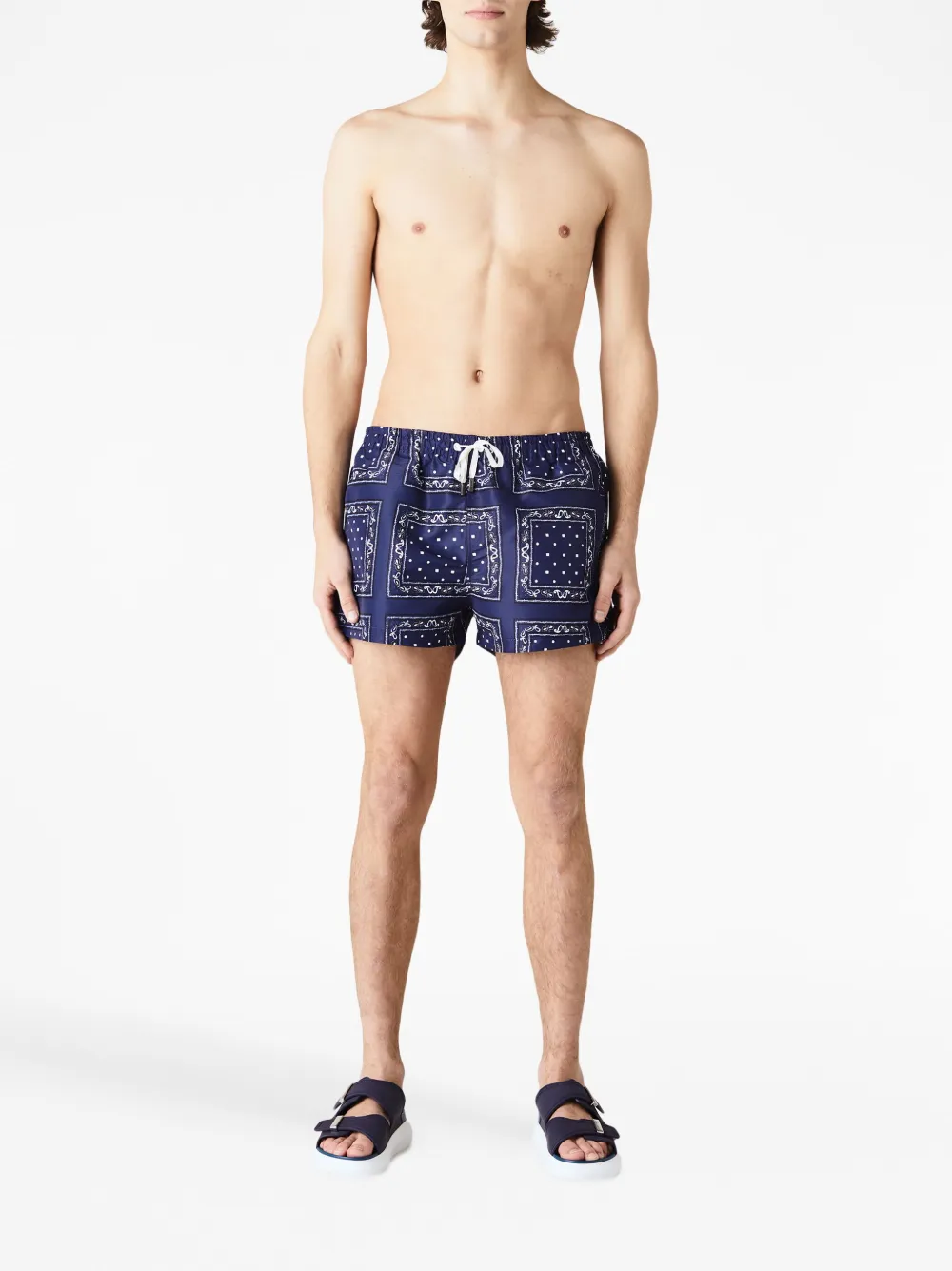 Marineblauw, gerecycled polyester, elastische tailleband met trekkoord en rechte zoom. Zwemkleding moet over je eigen kleding worden aangepast..