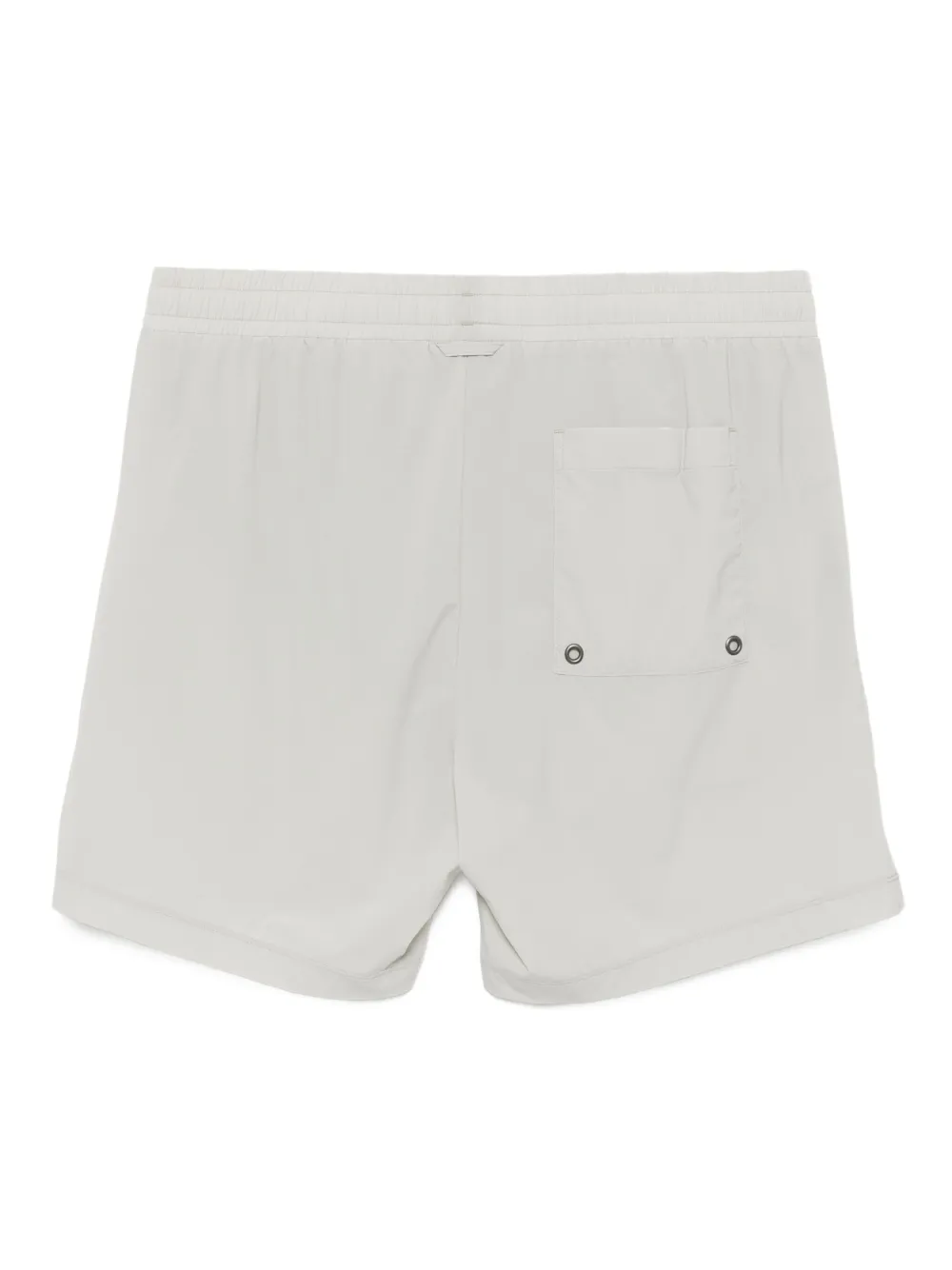 lichtgrijs gestrikte taille twee steekzakken aan de zijkant opgestikte zak aan de achterkant Zwemkleding moet over je eigen kleding worden aangepast.