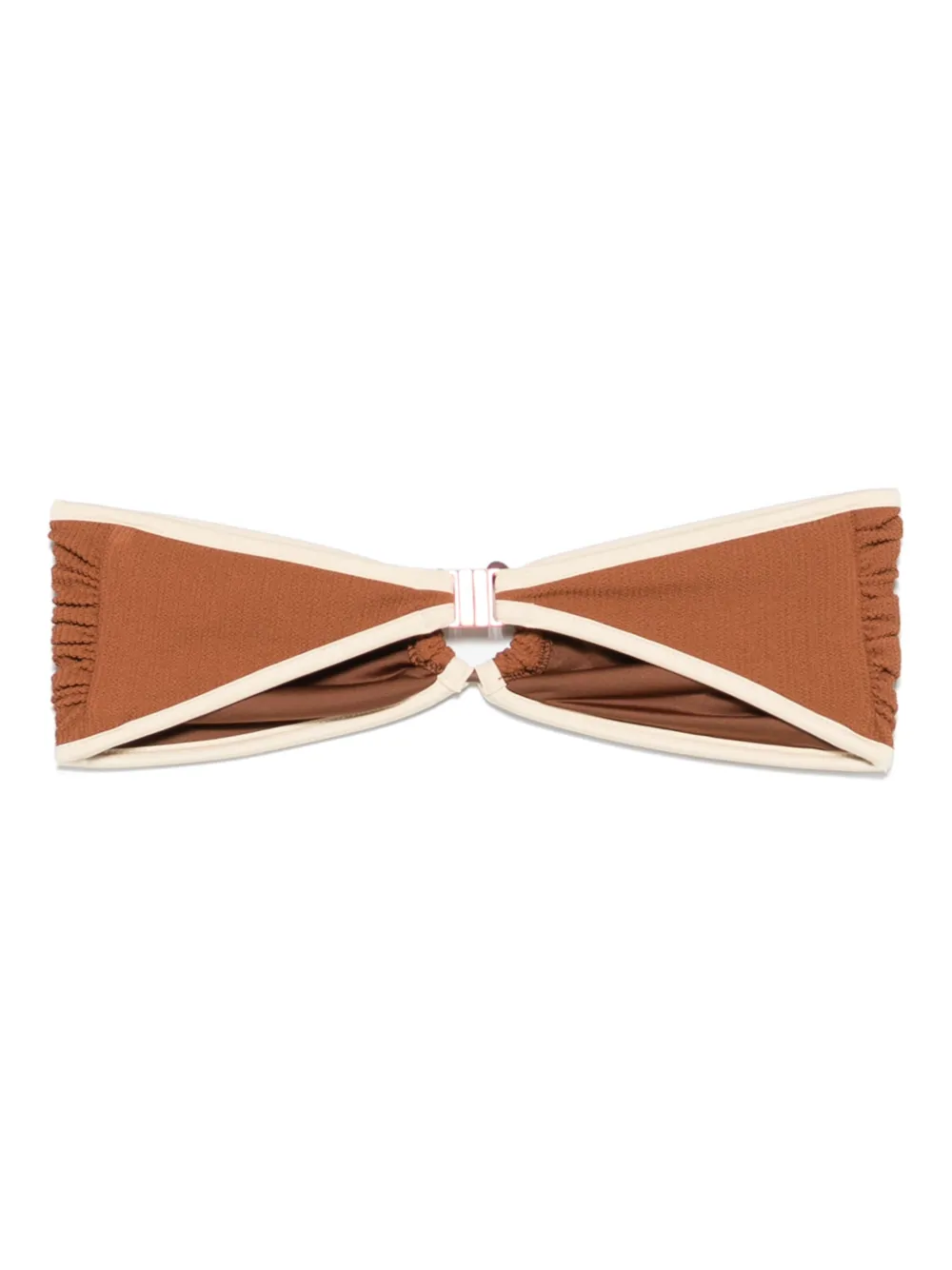 roestbruin sluiting aan de achterkant ruchedetails ringdetail Zwemkleding moet over je eigen kleding worden aangepast.