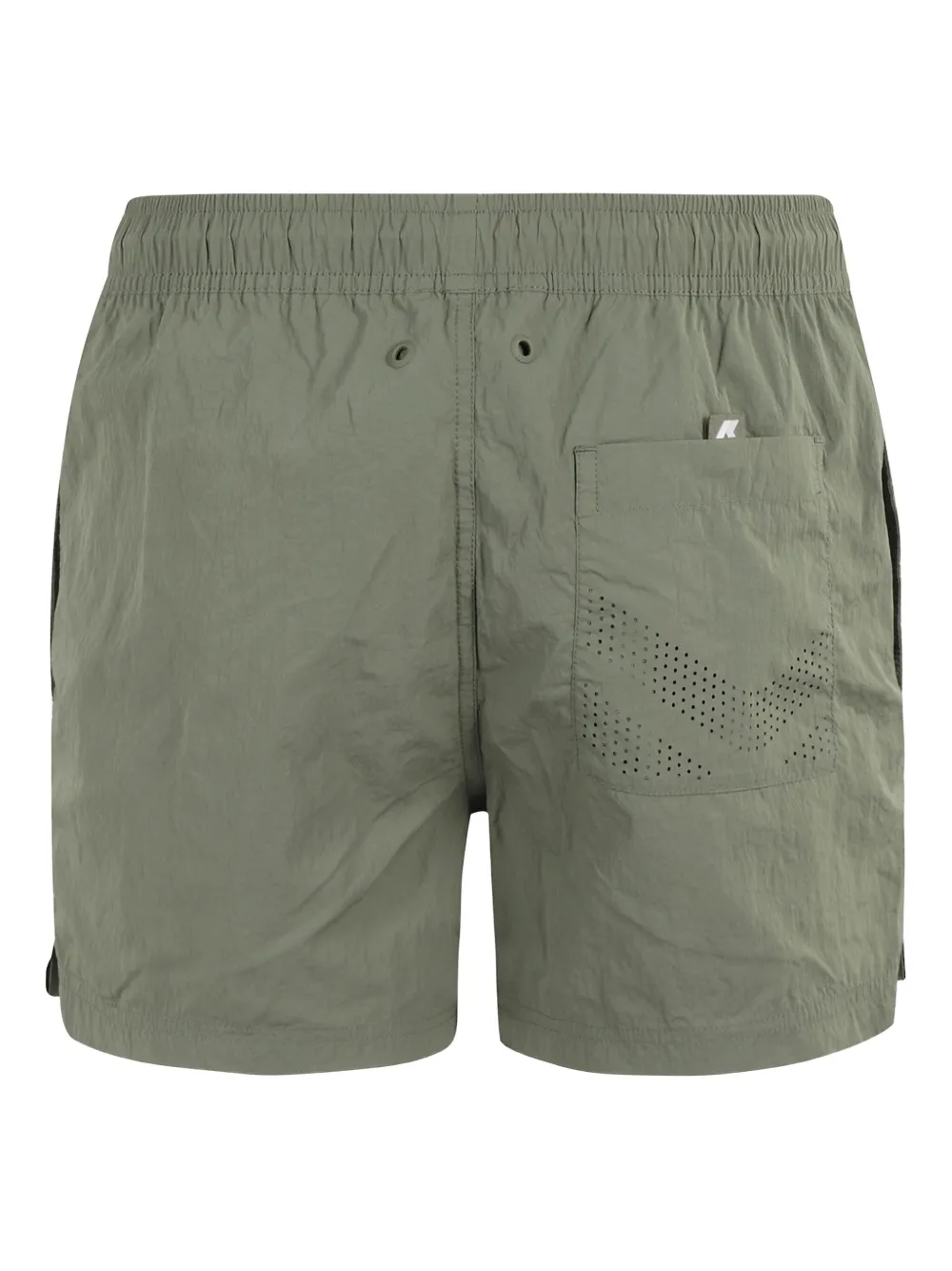 olijfgroen elastische tailleband met trekkoord twee steekzakken aan de zijkant opgestikte zak aan de achterkant Zwemkleding moet over je eigen kleding worden aangepast.