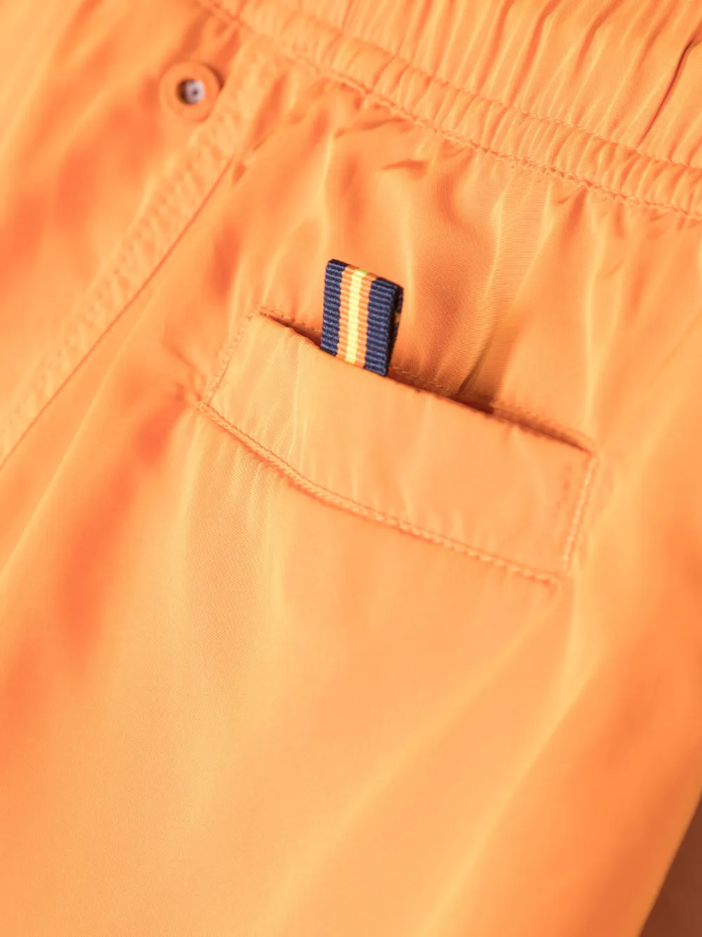 Worteloranje, elastische tailleband met trekkoord, logoprint op de pijpen, twee steekzijzakken, opgestikt vak aan de achterkant en dijlengte. Zwemkleding moet over je eigen kleding worden aangepast..