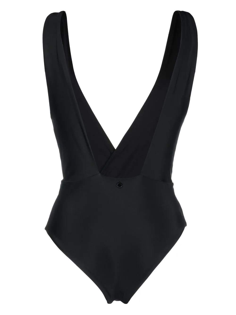 Zwart, gerecycled polyamide, wikkel design, geborduurd logo aan de zijkant, schakelkettingdetails, V-vormige watervalhals, mouwloos, taille met ceintuur en open achterkant. Zwemkleding moet over je eigen kleding worden aangepast.. POSITIVELY FARFETCH: Dit item is gemaakt van minstens 50% gerecycleerde of geüpcyclede materialen. .