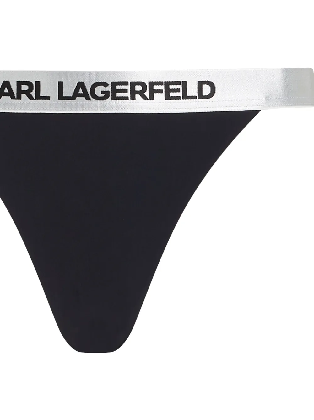 zwart/zilverkleurig gerecyclede polyamideblend jersey textuur klassieke bikinislip elastische tailleband met logo Zwemkleding moet over je eigen kleding worden aangepast.