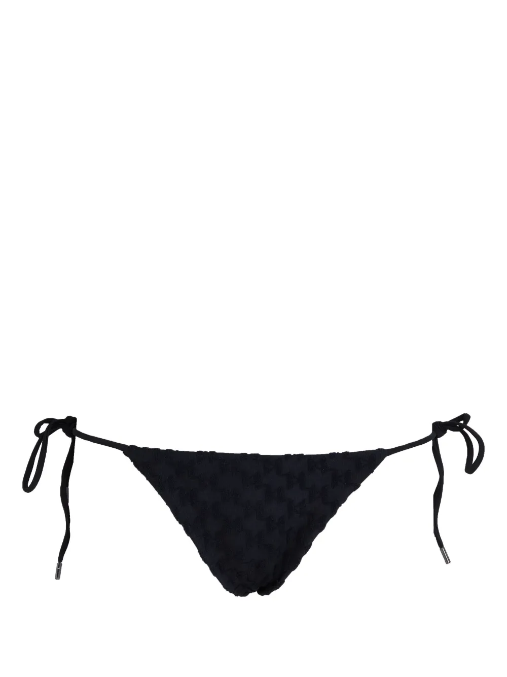 Zwart, monogramprint, striksluiting aan de zijkant en tonaal design. Zwemkleding moet over je eigen kleding worden aangepast..