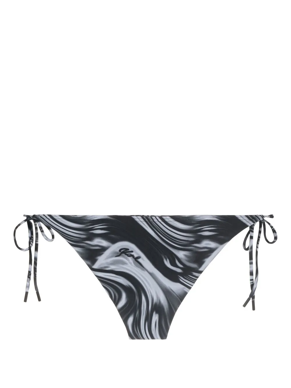 Zwart/grijs, gedraaide print, striksluiting aan de zijkant en logoprint op de voorkant. Zwemkleding moet over je eigen kleding worden aangepast..