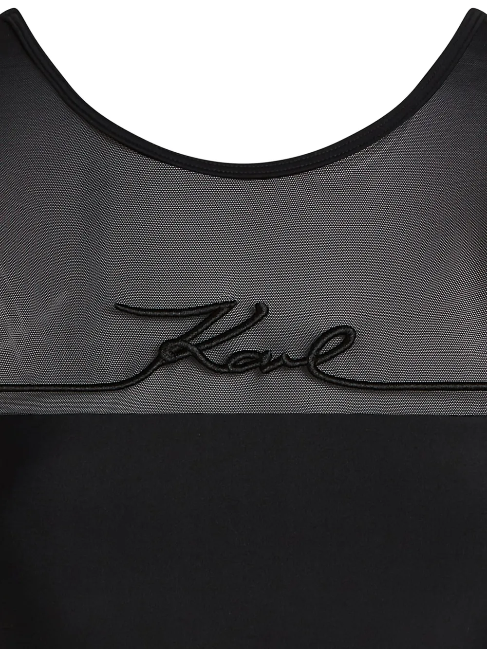 zwart gerecyclede polyamideblend geborduurd logo doorzichtig vlakdetail ronde hals mouwloos laag uitgesneden rug Zwemkleding moet over je eigen kleding worden aangepast.