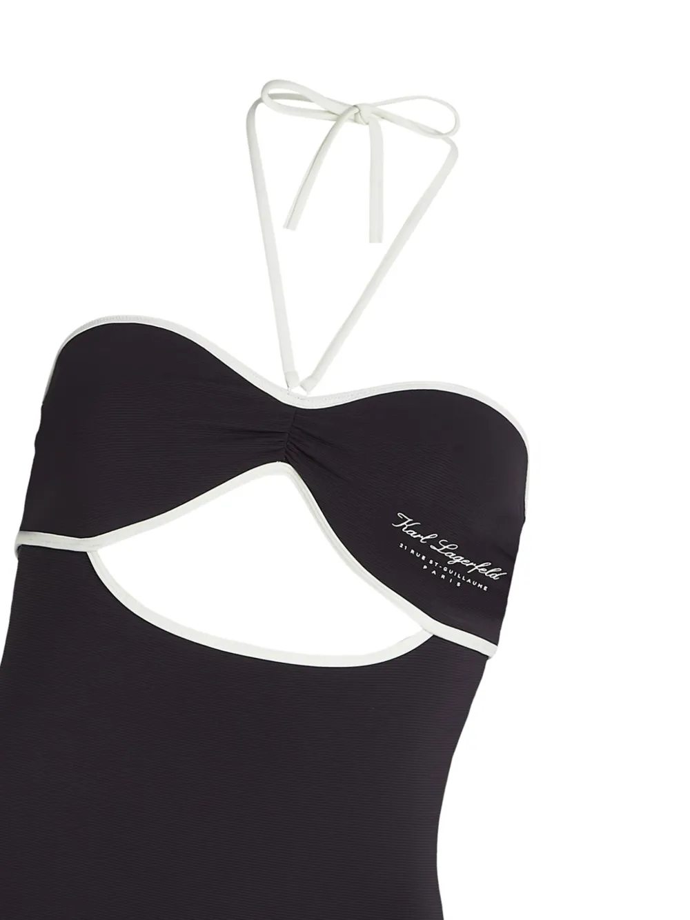 zwart/wit stretch design sluiting aan de achterkant halternek striksluiting sweetheart-hals contrasterende afwerking logoprint op de borst uitgesneden detail Zwemkleding moet over je eigen kleding worden aangepast.