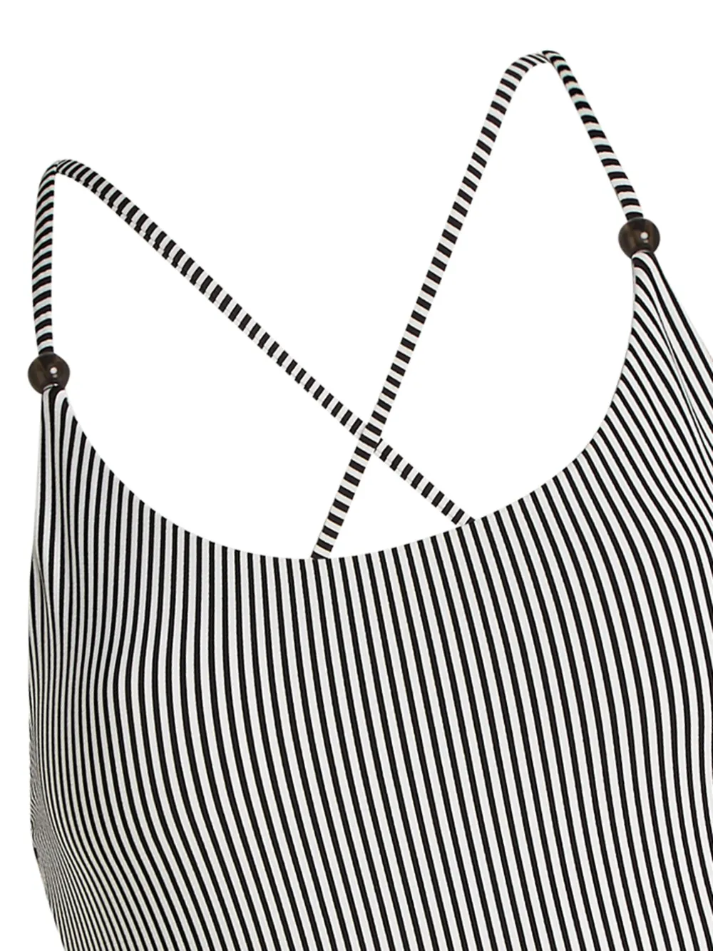 wit/zwart technische jersey rubberen logodetail verticale strepen ronde hals verstelbare spaghettibandjes gekruiste bandjes aan de achterkant Zwemkleding moet over je eigen kleding worden aangepast.