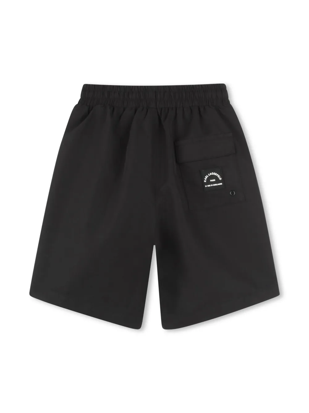 zwart logoprint op de pijpen elastische tailleband met trekkoord twee steekzakken aan de zijkant klepzak achter logo-applicatie ringlets detail rechte zoom Zwemkleding moet over je eigen kleding worden aangepast.