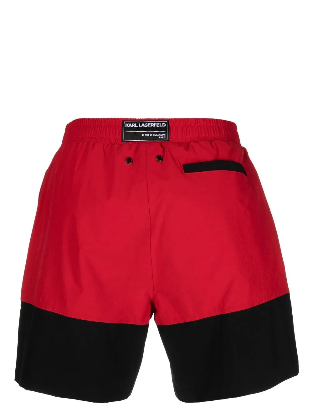 Zwart/rood, design met colourblocking, logoprint op de voorkant, logopatch aan de achterkant, ringlets detail, elastische tailleband, paspelzak aan de achterkant en straight-fit. Zwemkleding moet over je eigen kleding worden aangepast..