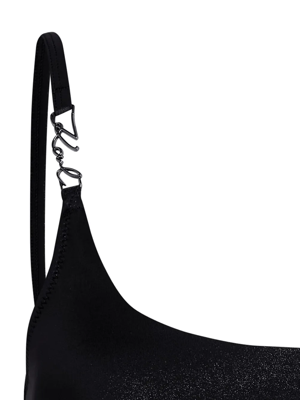 zwart ronde hals logo glitterdetail sluiting aan de achterkant verstelbare spaghettibandjes Zwemkleding moet over je eigen kleding worden aangepast.