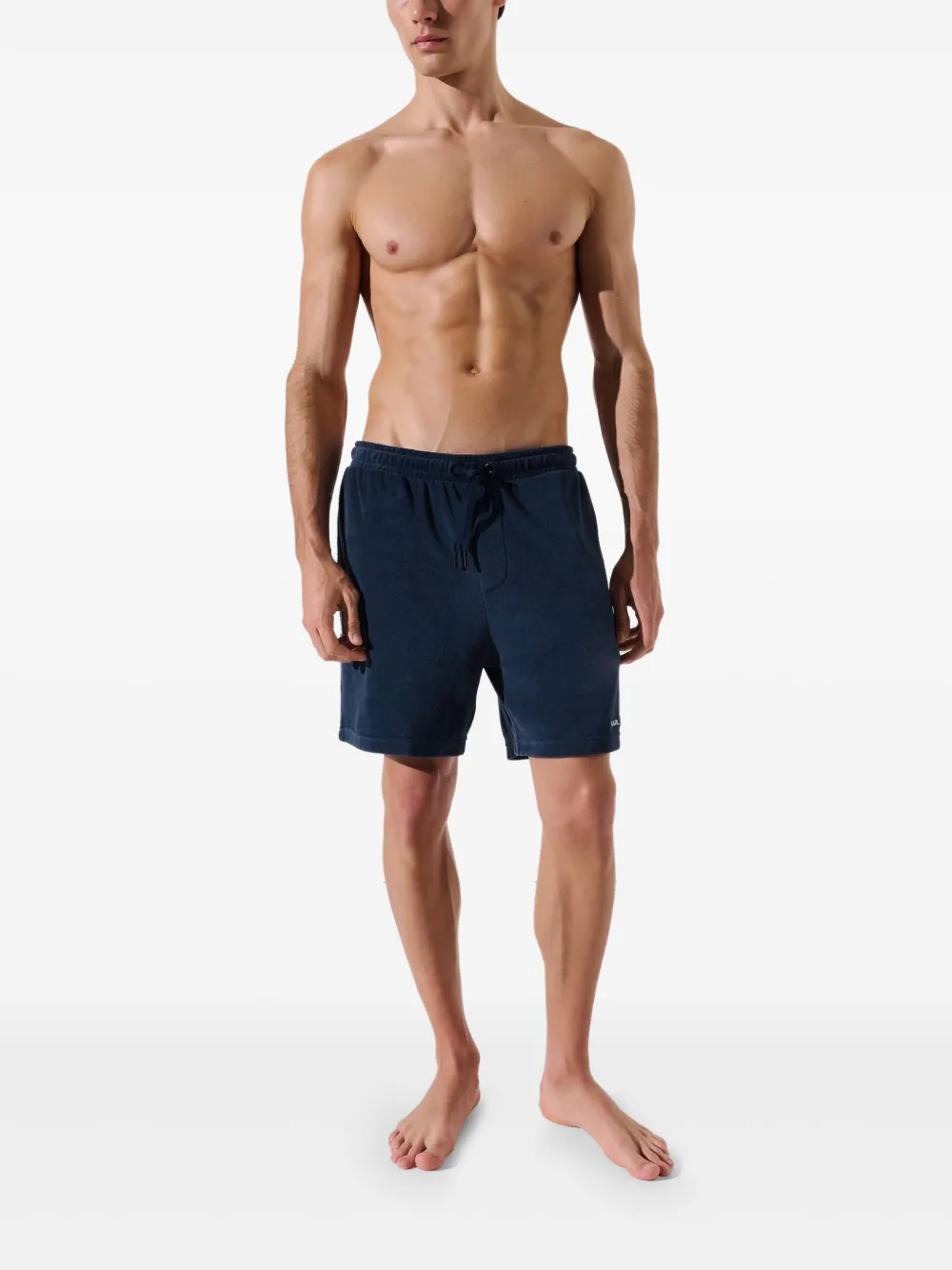 blauw geborduurd logo op de voorkant elastische tailleband met trekkoord Zwemkleding moet over je eigen kleding worden aangepast.