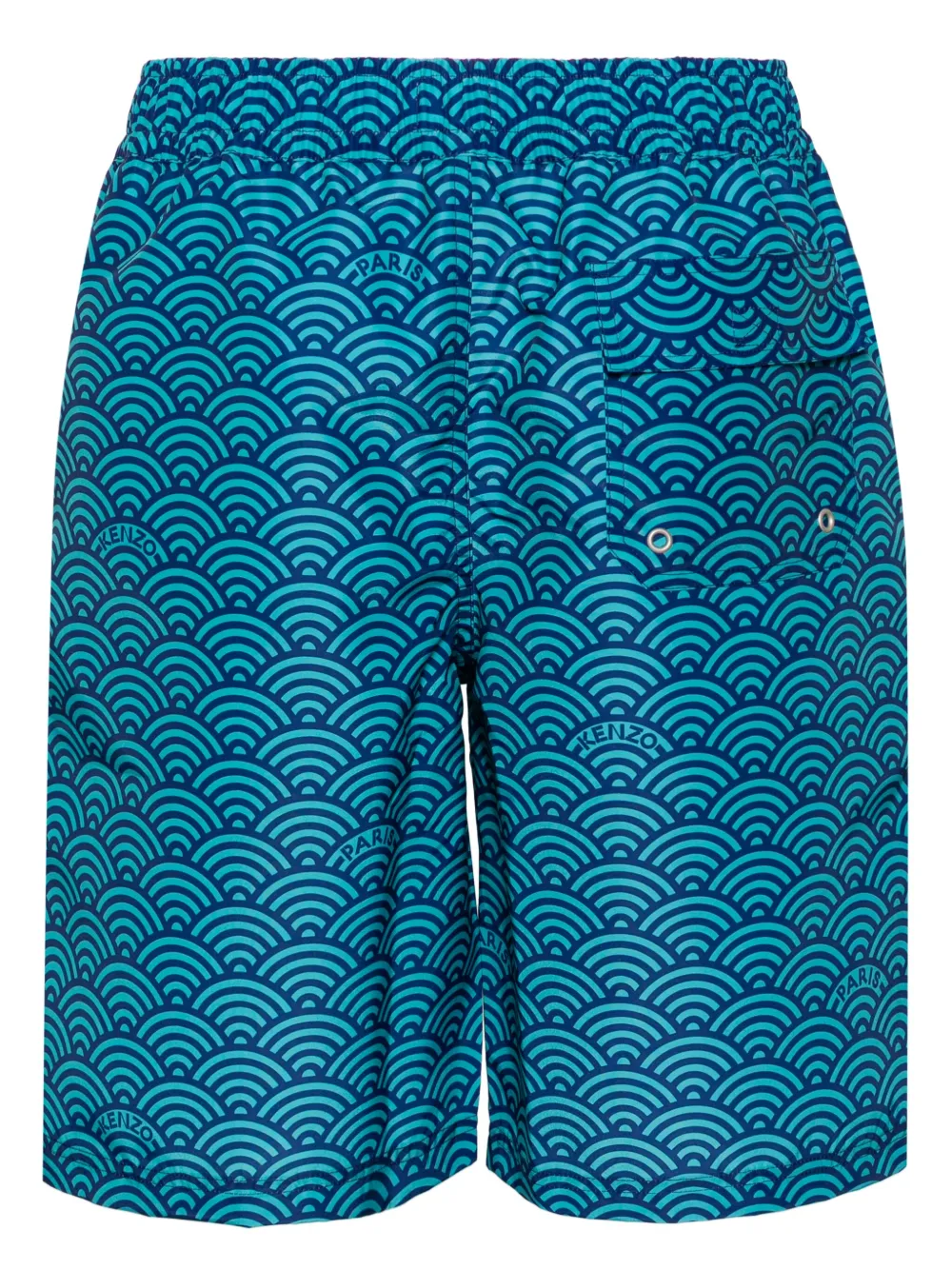 blauw all-over Seigaiha print elastische tailleband met trekkoord twee steekzakken aan de zijkant klepzak aan de achterzijde ringlets detail ongevoerd klittenbandsluiting aan de voorkant Zwemkleding moet over je eigen kleding worden aangepast.