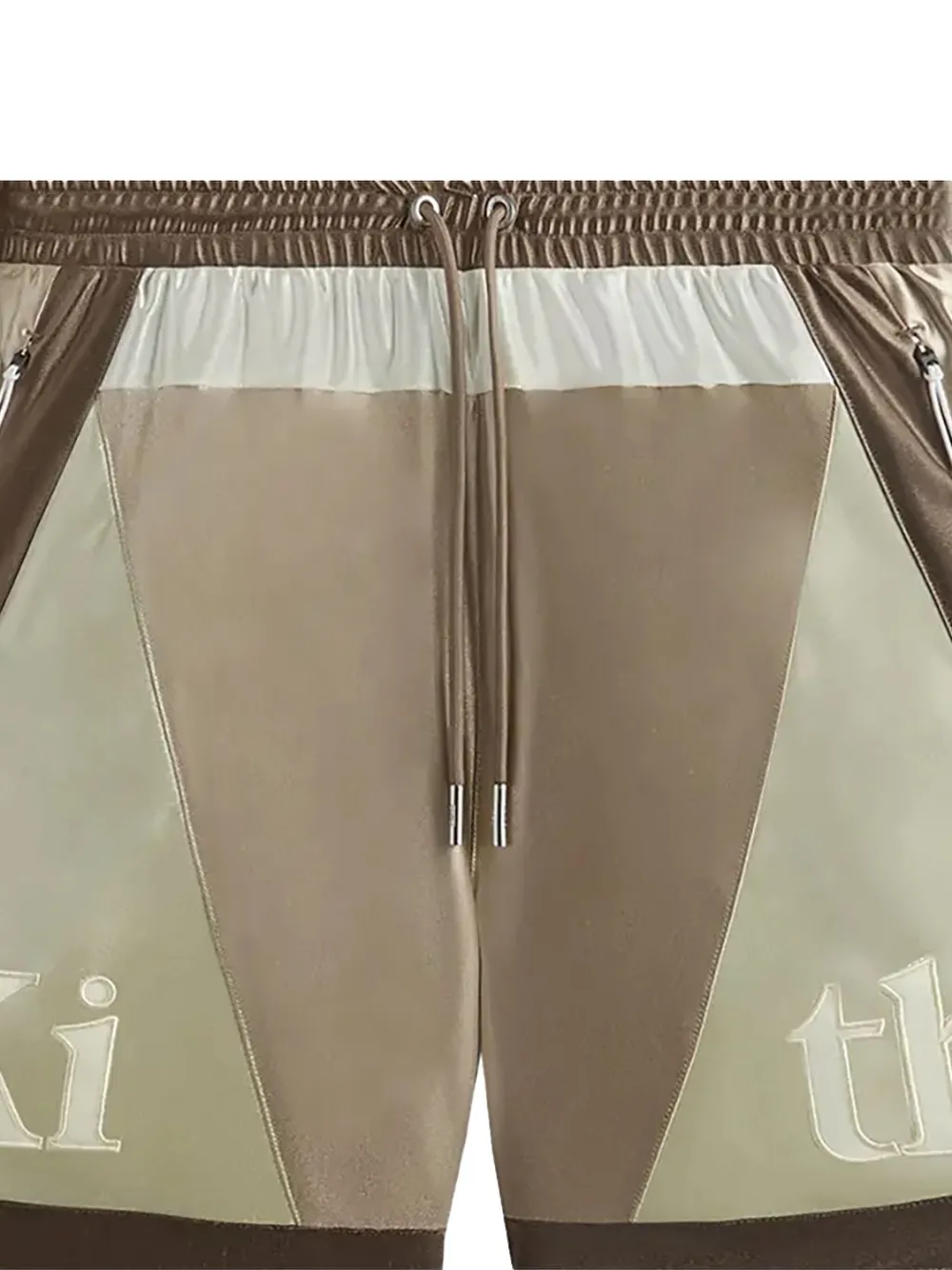 grijs/bruin geometrische vlakken trekkoordsluitingzijvakken met ritssluiting geborduurd logo jersey stof Zwemkleding moet over je eigen kleding worden aangepast.