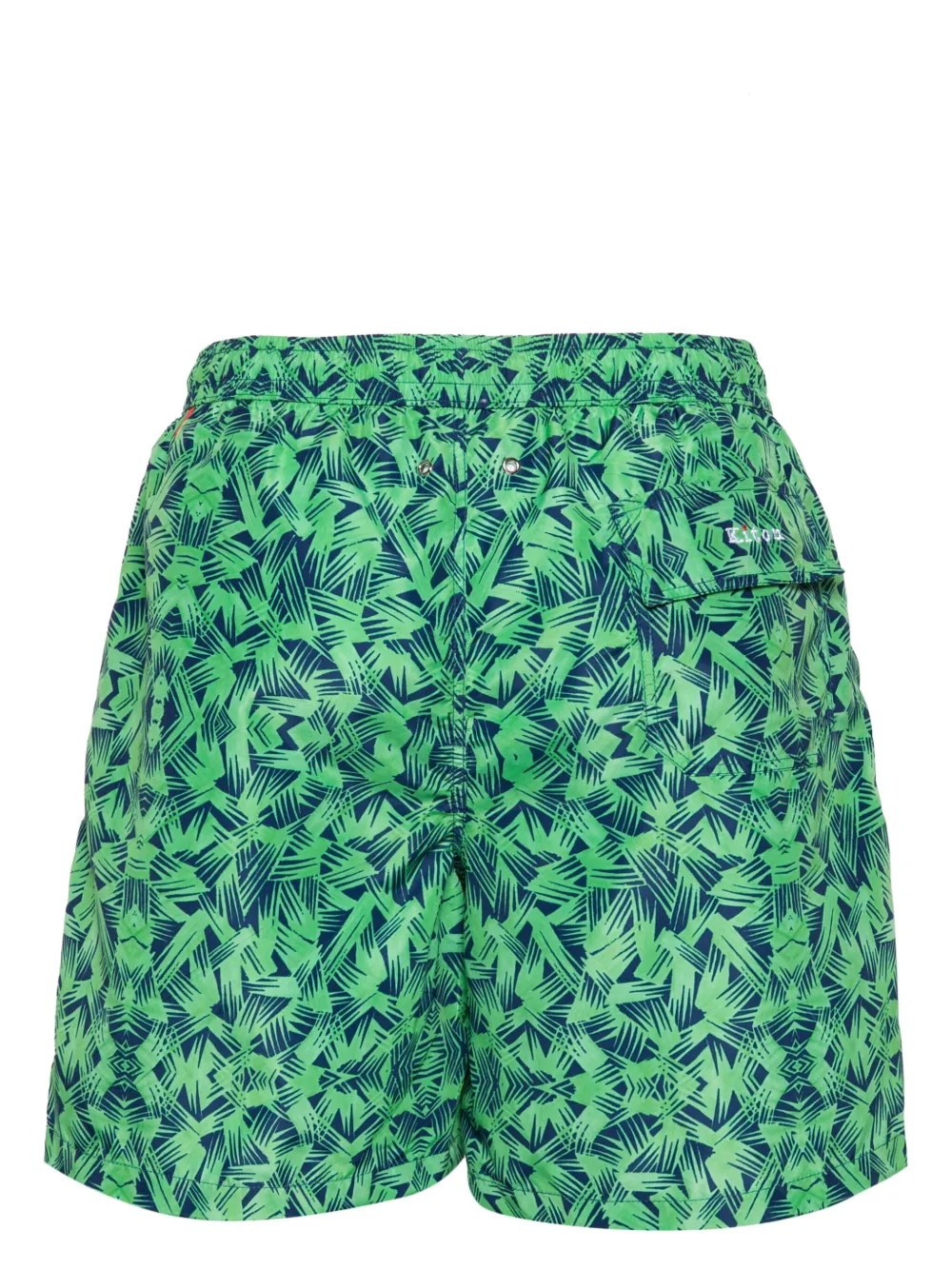 groen/marineblauw technische jersey abstract patroon ringlets detail geborduurd logo aan de achterkant elastische tailleband met trekkoord vakje voor muntgeld twee ingenaaide zijzakken klepzak aan de achterzijde gedeeltelijk gevoerd trekkoordsluiting Zwemkleding moet over je eigen kleding worden aangepast.